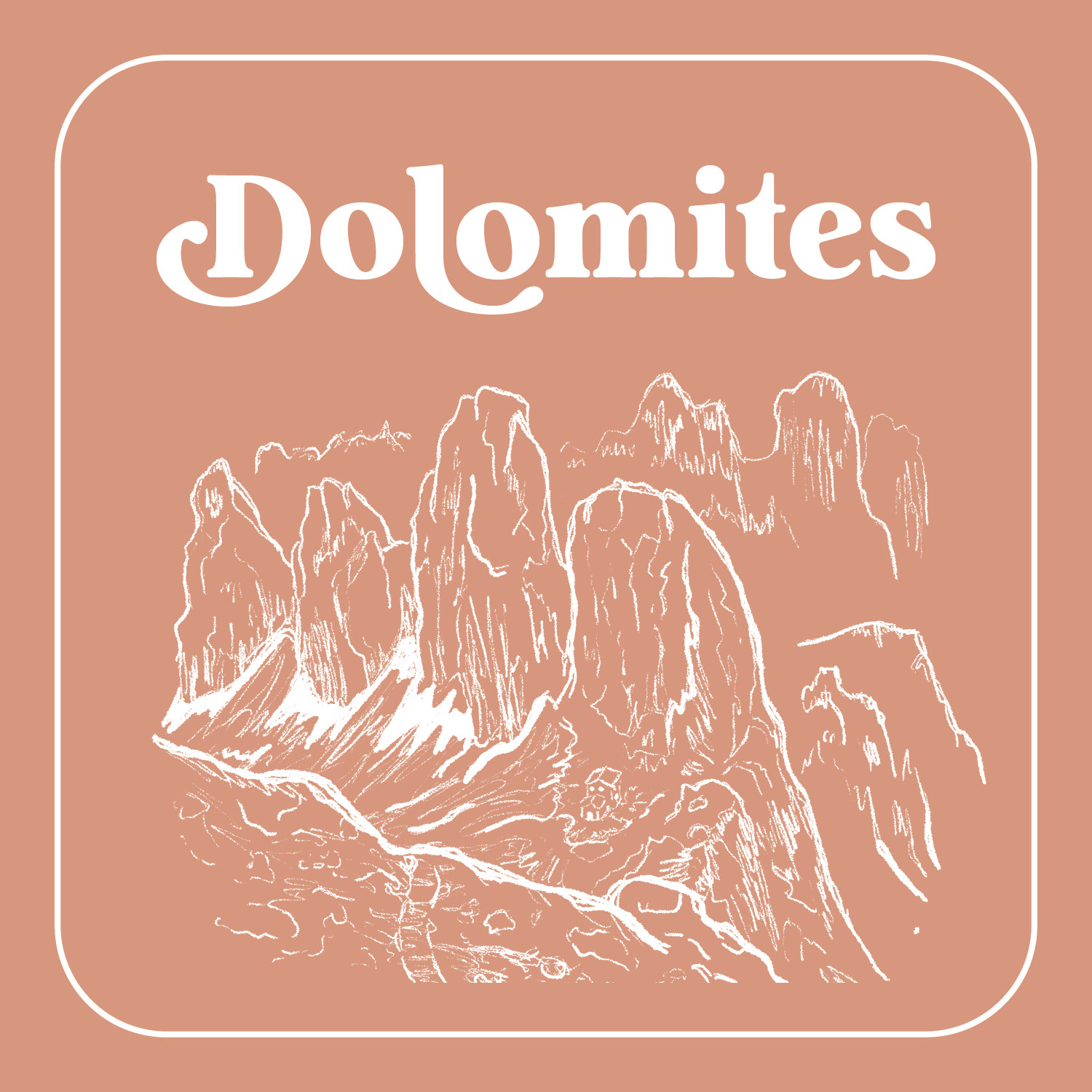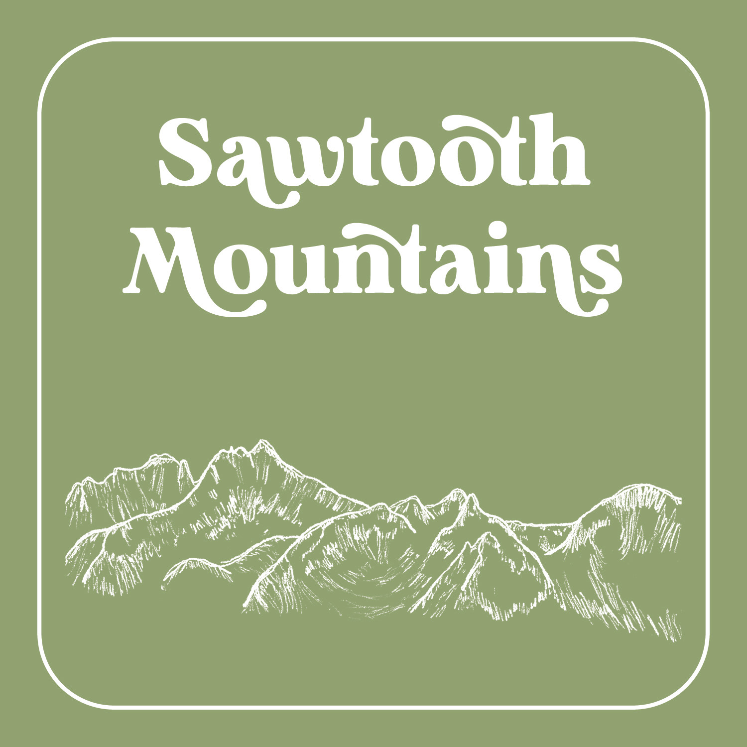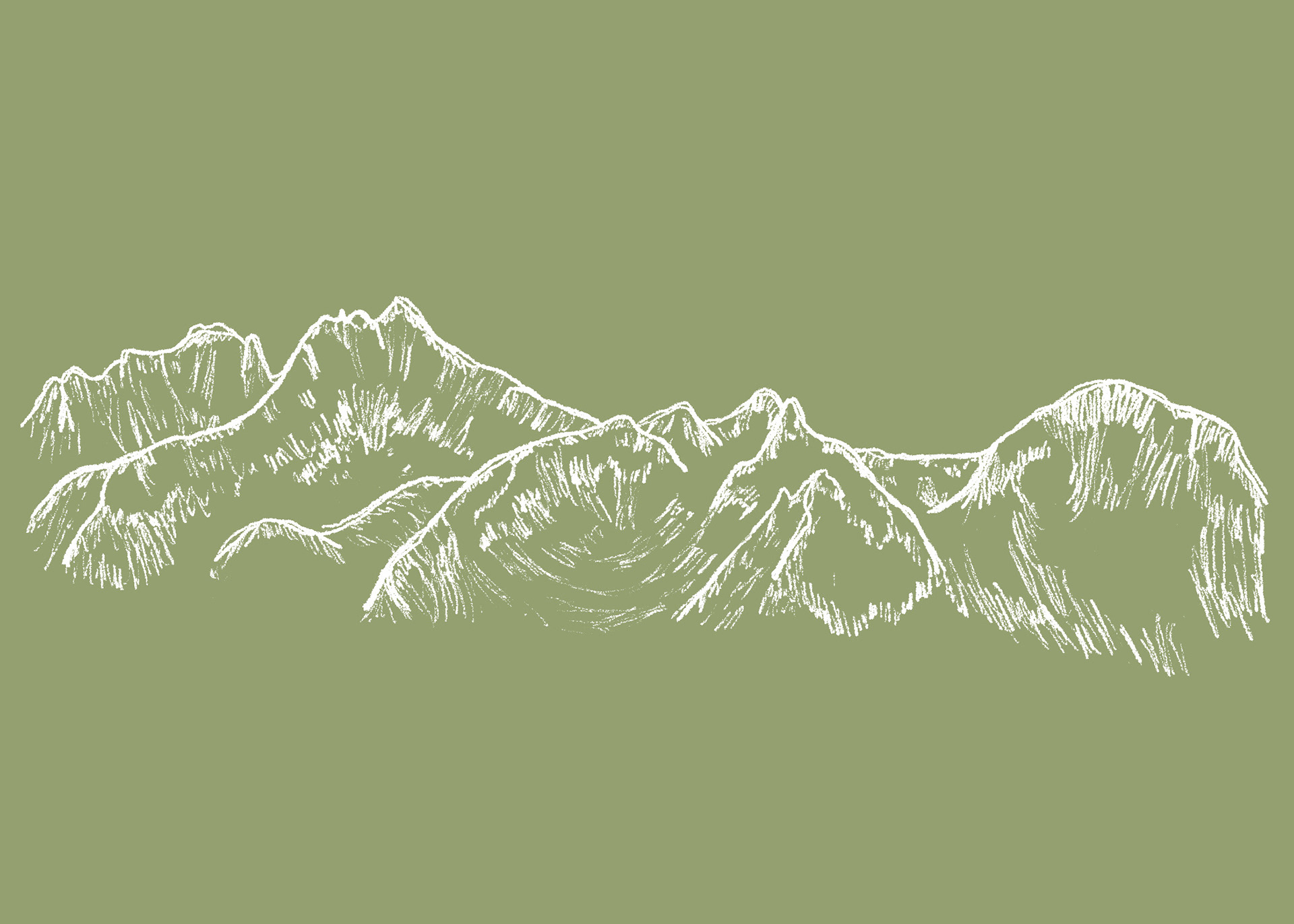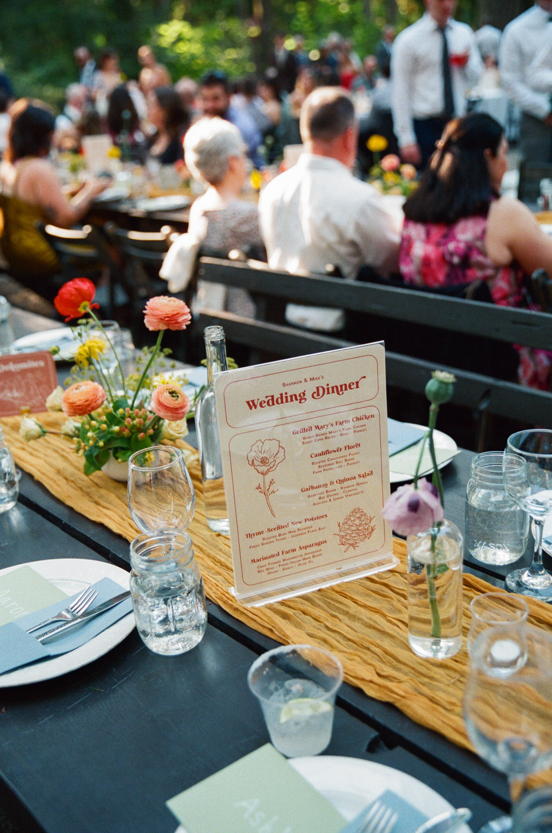 I illustrated the Dolomites (coral pink), Mt. Hood (dark blue), Mt. St. Helens (seafoam green), the Owyhee Canyonlands (orange), and the Sawtooth Mountains (moss green) for table settings and also seating charts.