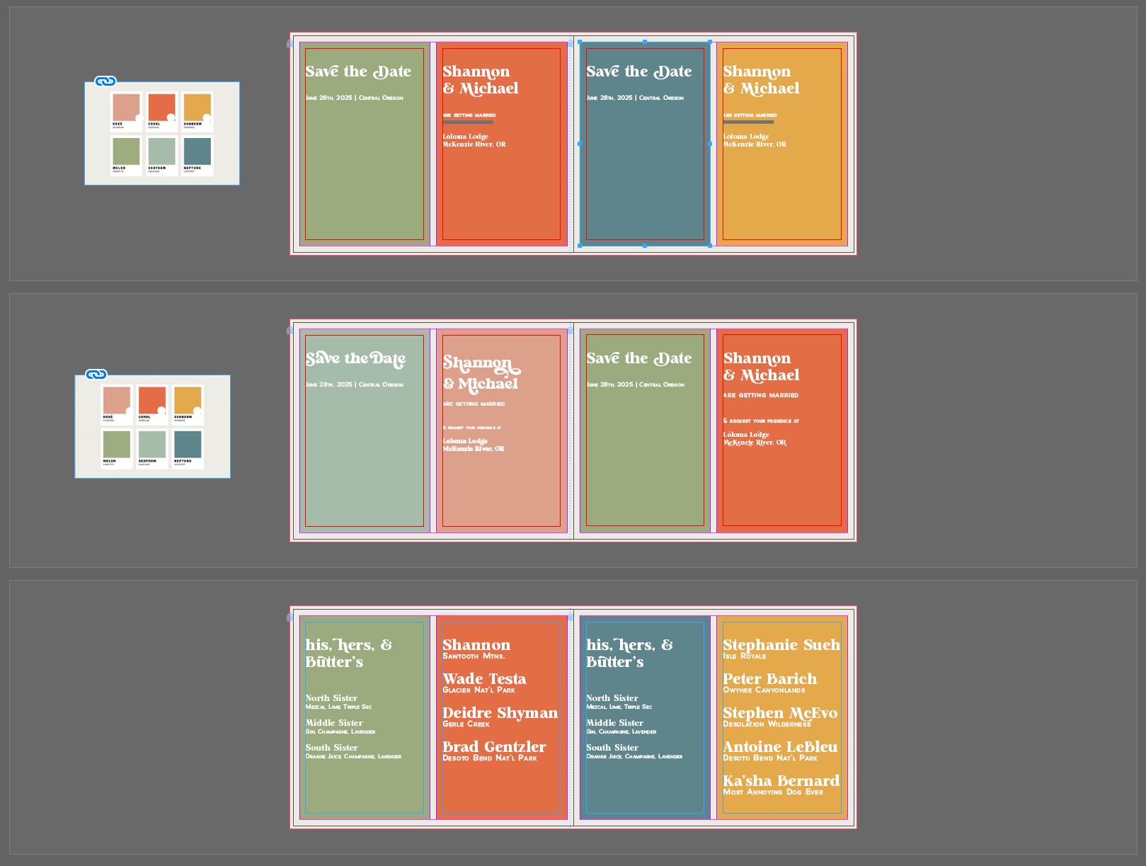 However, my partner and I had very high standards in curating peoples' experience at it, and we wanted to do something that felt like us. I curated various color schemes, narrowing to jewel tones, and helped my wife pick out the fonts that felt outdoorsy but not trite, elevated but not stuffy, and bright but not tacky.